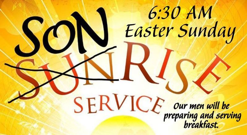 We invite you to come out and enjoy our SUNRISE SERVICE on April 5th at 6:30 a.m.